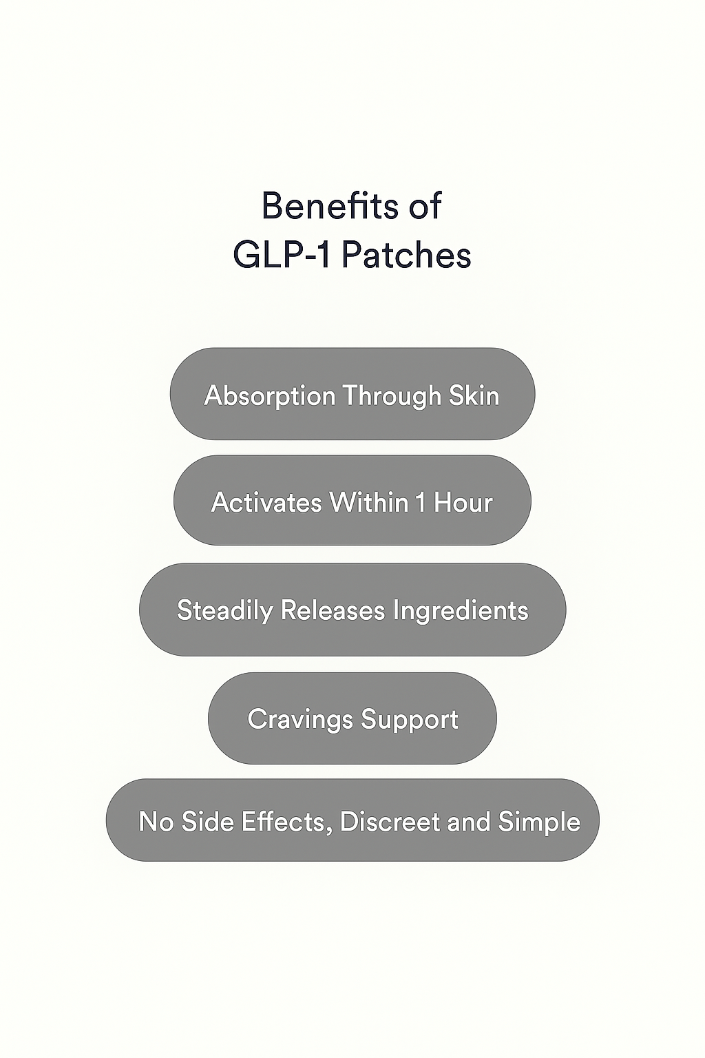 Our GLP-1 patches are crafted using meticulously researched and validated ingredients to aid your health objectives.